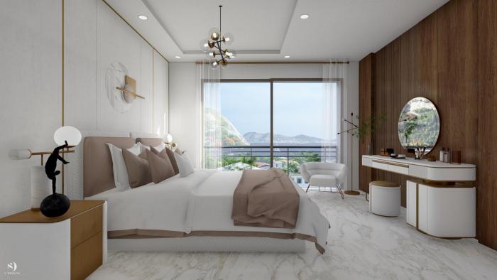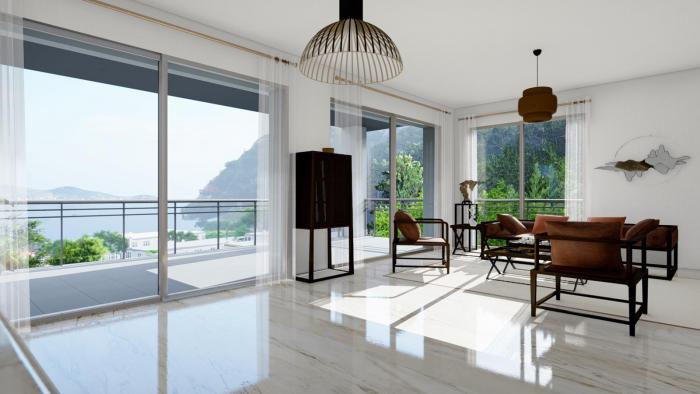 Die Erdgeschosswohnungen verfügen über private Gärten auf der Rück- und Seitenfläche, während die Wohnungen in den oberen Etagen mit großzügigen Terrassen und Seesicht begeistern.