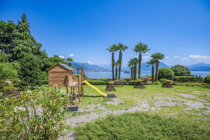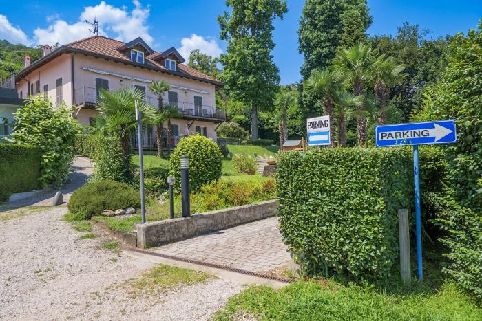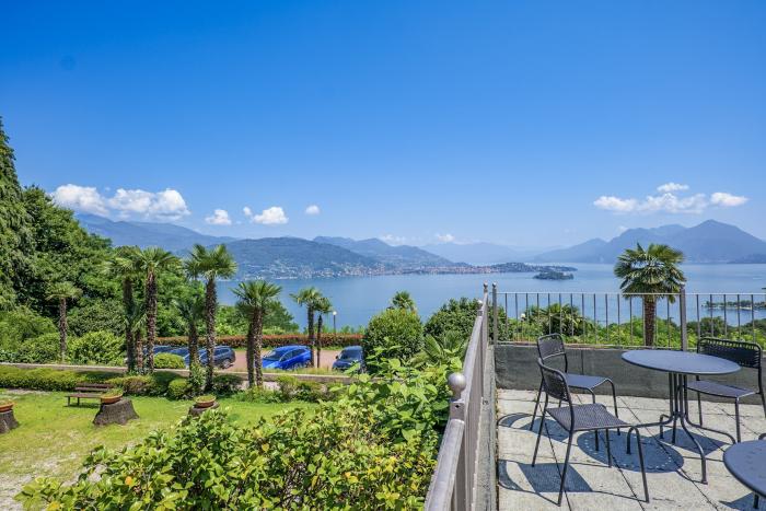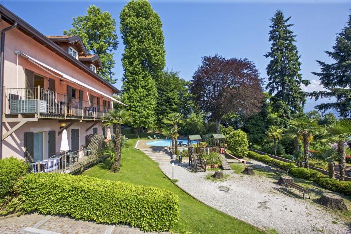 Diese einmalig schöne Jugendstilvilla befindet sich in einer wahrhaft privilegierten und ruhigen Panoramalage mit atemberaubender Sicht auf den See, die Borromäischen Inseln und die umliegenden Berge. Bei der sorgfältigen Restaurierung der denkmalgeschützten Jugendstilvilla wurde die Struktur der alten Fassade erhalten bzw. wiederhergestellt. Das Resultat ist eine stilvolle Villa mit modernem Komfort, aber dem Charme der ursprünglichen Fassade mit wunderschönen Wandmalereien. Im Jahre 2017 wurden die Wohnungen letztmalig renoviert und neu, dem Stil der Villa entsprechend, geschmackvoll möbliert. Alle Küchen verfügen über Geschirrspülmaschine, 2-Platten-Induktionsherd und Mikrowelle. Darüber hinaus zeichnen sich die meisten Wohnungen durch einen herrlichen privaten Außenbereich mit Terrasse und Garten bzw. Balkon mit jeweils gigantischer See-, Insel- und Alpensicht aus. Zu allen Wohnungen gehört zudem ein gemeinschaftlicher Außenbereich bestehend aus einer Sonnenterrasse („Solarium“) und einem ca. 1.000 m² großen Garten. Hier befindet sich auch der schöne Pool (ca. 10 m x 7 m, witterungsbedingt geöffnet von ca. Anfang April bis ca. Mitte Oktober) mit großer Liegewiese, Gartendusche, Liegen und Sonnenschirmen. Kinder erfreuen sich des Weiteren an dem kleinen Kinderspielplatz. Eine Waschmaschine steht gegen Gebühr zur allgemeinen Benutzung zur Verfügung. Die Wohnungen erreichen Sie entweder über das Treppenhaus oder auch bequem mit dem Aufzug. Parken können Sie Ihren PKW innerhalb des Grundstücks auf zwei verschiedenen Parkplätzen.