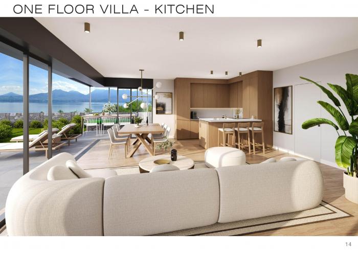 ► Villa Fiordaliso auf einer Etage mit ca. 122 m² Wohnfläche und 380 m² Grundstück. Verkaufspreis inkl. einer 39 m² großen Doppelgarage: